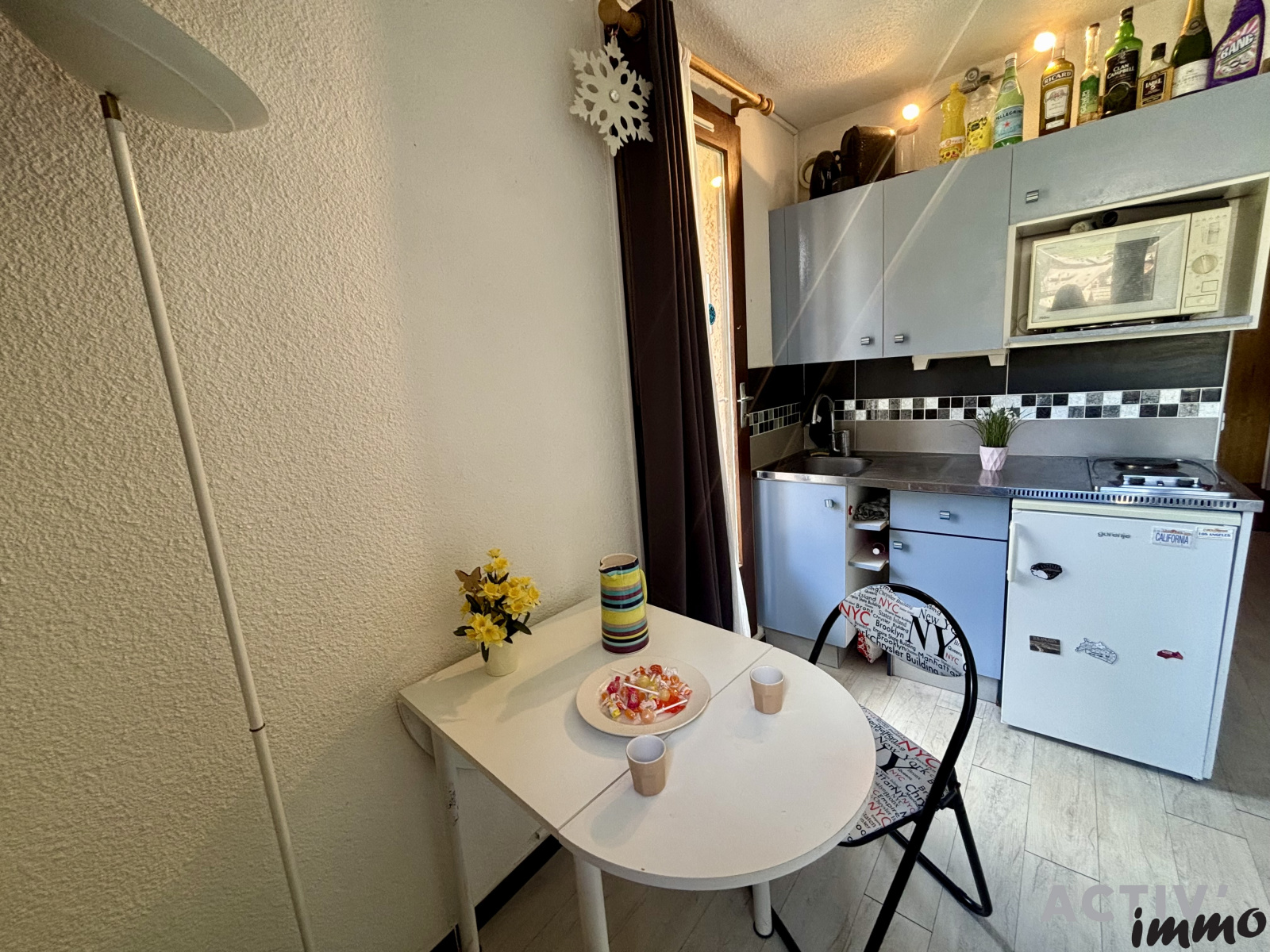 Situé dans une résidence avec accès direct aux pistes et à proximité des commerces. L'appartement est vendu meublé, avec un casier à skis.