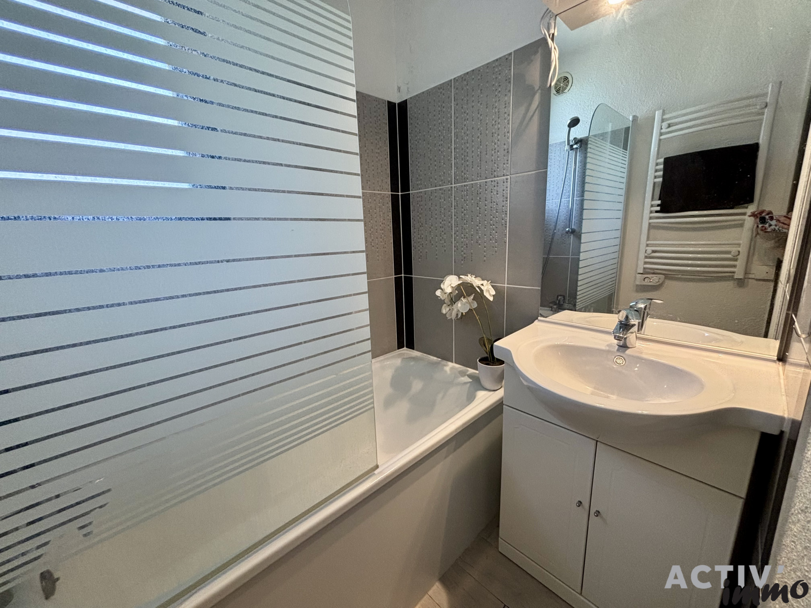 Studio de 16.06 m² composé d’une entrée avec un coin montagne, d’une salle de bain et un WC séparé.